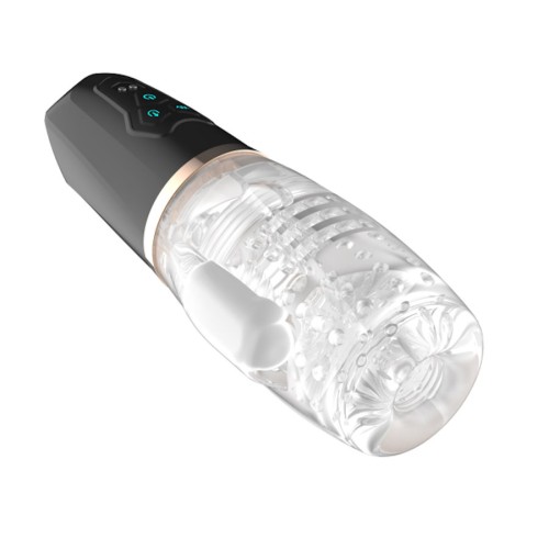 Waterproof vibrating male stroker. Length of use: 80 minutes. Control